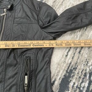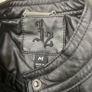 L2 Women's Black Faux Leather Zip Up Collared Motorcycle Jacket Size M