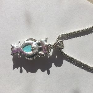 Adorable zinc alloy necklace. Owl has turquoise stone. Chain is about 18" plus 2" extender. New in package.