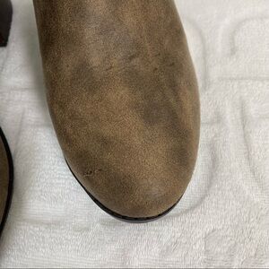 L4L Lust for Life chunky heeled knee high boots. Tan/brown shade. Heel measures approximately 2.5inches and boot measures 18.5 inches in back from top to bottom of heel. Excellent preowned condition. Small scratches on top of foot from storage.