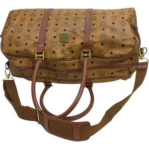 (L5) Authentic MCM Travel Bag Brown PVC Luxury Vintage Designer Handbag