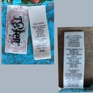 Gorgeous large graphic red floral roses print front with an aqua lace back. Scoop neck, tie front.