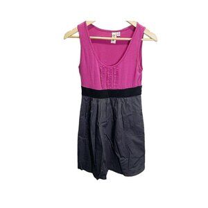 L8ter Dress Y2K Size S Pink Gray Short Sleeveless A-line Colorblock Tuxedo Ruffl
