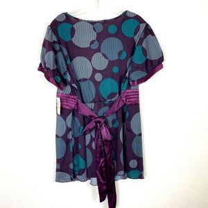 L8ter NWT Women's V-Neck Tunic Top Size 3X Purple Green Belted Office or Party