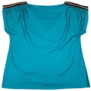 L8ter plus size 2x lighter blue with zipper accents on sleeves, scoop neck material bunches around neck/chest area, short sleeves, great used condition!
