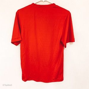 Red white, Angels Baseball logo printed on the front. Workout apparel material. Stretchy comfortable