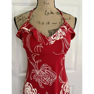 LA BELLE Vintage Dress White Red Floral Print Y2K 90s USA Romantic Coast Medium
