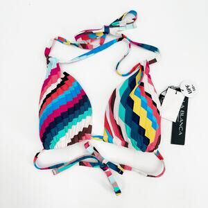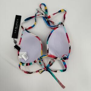 LA BLANCA Bikini Top Size 8 NWT Slice of Paradise Halter Triangle Multi Stripe