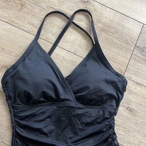 LA BLANCA Black One Piece Swimsuit Ruching Detail