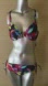 Striking bikini top and matching side tie hipster bottoms enlivened with a colorful floral print allover.