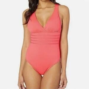 LA BLANCA Coral Reef Island Goddess Cross-back Swimsuit Size 12