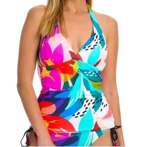 LA BLANCA Eclectic Shore Halter Tankini Top Size 4
