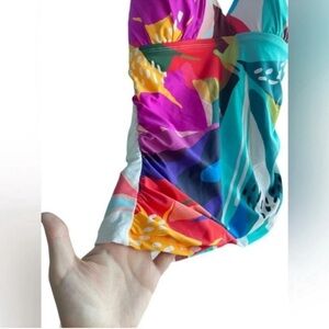Make a splash with this vibrant floral halter neck swimsuit. Featuring a stunning mix of colors, this piece is perfect for a day at the beach or pool. Enjoy the perfect blend of style and comfort.