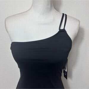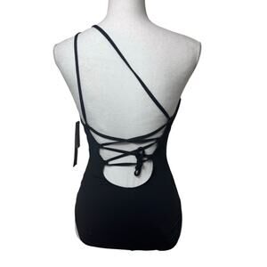 LA BLANCA ISLAND GODDESS LACE BACK ONE SHOULDER ONE PIECE BLACK SIZE 4 NWT