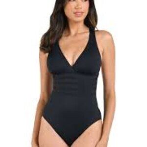 LA BLANCA ISLAND GODDESS MULTI-STRAP CROSS-BACK ONE PIECE BLACK SWIMSUIT SIZE 12