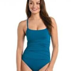 LA BLANCA ISLAND GODDESS ROUCHED WOMEN OCEAN SWIMSUIT ONE PIECE SIZE 8 UPF 50+