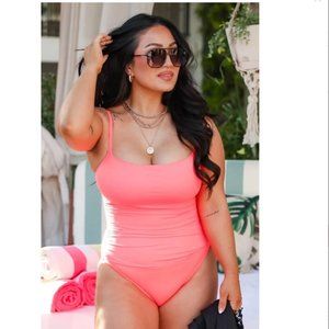 There's something incredibly sexy about the simplicity of this one-piece suit in this Ultra-Bold color! Allover shirring camouflages worry areas for a slim, toned look, while a demi-scoop neckline and high-cut sides reveals just the right amount of skin. Removable cups and adjustable straps provide the perfect amount of support to help you feel lifted.