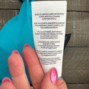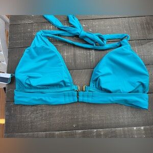 LA BLANCA Island Goddess Over Shoulder Halter Triangle Top Turquoise 14 NEW