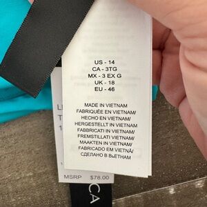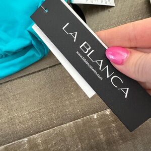 LA BLANCA Island Goddess Over Shoulder Halter Triangle Top Turquoise 14 NEW