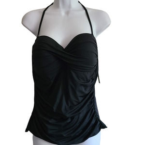 LA BLANCA Island Goddess Twist Front Tankini Swimsuit TOP Black Women's 12 NWT