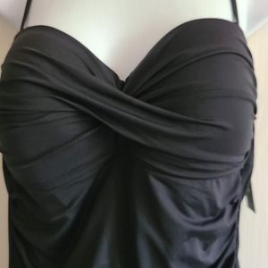 "Offering up plenty of glamour-girl style, our bandini features a twist front that creates a bust-enhancing sweetheart neckline. Allover shirring offers up a slimming fit.