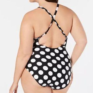 LA BLANCA Plus Dot Lace Up One-piece Swimsuit NWT