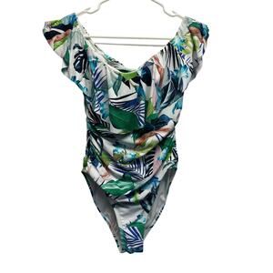 LA BLANCA Ruffled Off the Shoulder One PC Swimsuit Size 10 Floral