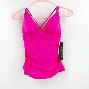 LA BLANCA Tankini Top Size 4 Pink NWT Island Goddess Pop Pink Crossback Strappy