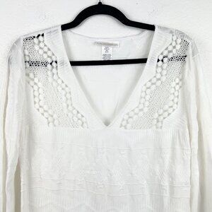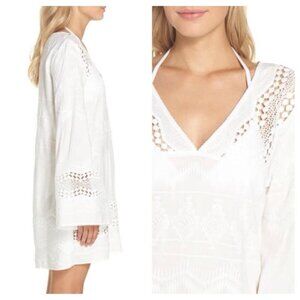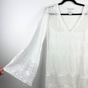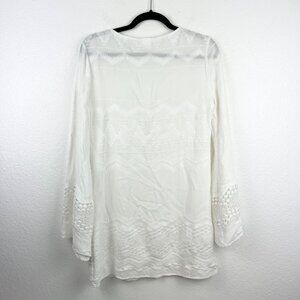 LA BLANCA White Embroidered and Lace V-Neck Swim Cover Up Tunic, Size XS