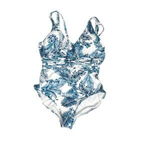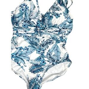LA BLANCA Women's Aqua Floral Deep V Neck Strappy One Piece Swimsuit 16