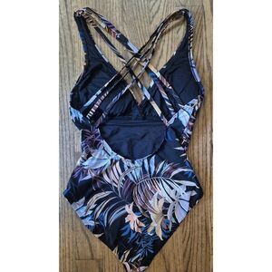 New without tags. No damage of any kind. Strapppy criss-cross across back. Full coverage on bottom & padding on top. Measures 15" pit to pit & 32" shoulder to hem. Comes from a smoke-free / pet-free home.