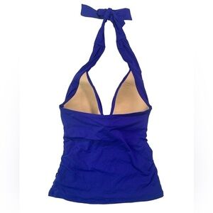 This halter tankini swimsuit offers the versatility of a bikini top (you can mix and match bottoms) with the coverage of a one-piece. The v-plunge neckline features molded cups for just the right amount of support, with straps that tie at the neck for an adjustable fit. We especially love how allover ruching instantly slims and flatters the figure.