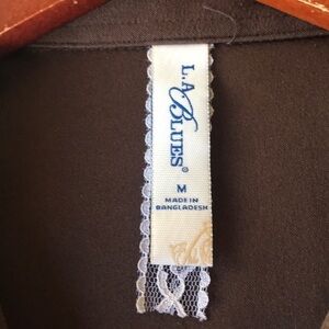 LA Blues, 3/4 Zip, Soft Suede Feel, Brown Blazer Jacket. Two front pockets with snap closure. Soft, & comfy suede feel. 97% polyester 3% spandex.