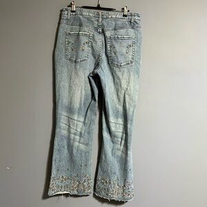 L.A. Blues Blue Ankle Cropped Jeans with Embellished Hem size 12