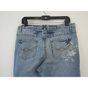L.A. Blues Size 16 Medium Blue Denim Jeans Floral Embroidery Dazzled Bootcut