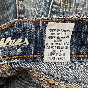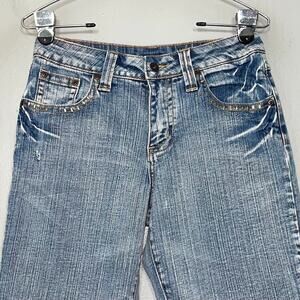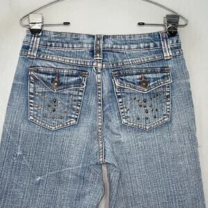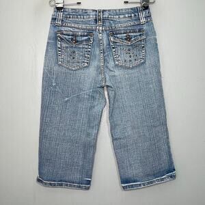 LA Blues Size 6 Embellished Blue Jean Denim Capris Y2K Button Flap Pockets Crop