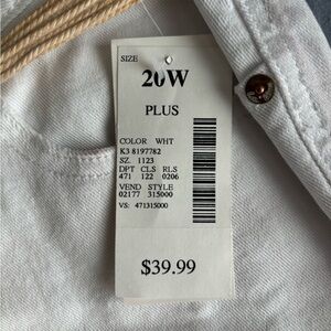 L.A. Blues Women’s Designer White Jeans Size 20W Plus Embroidered Floral NEW TAG