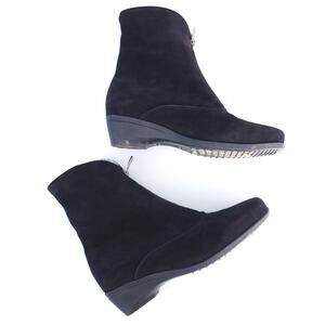 LA CANADIENNE Boots SZ 6 Women Black Suede Leather Zip Up Front Microfiber Lined/ Excellent preowned condition. La Canadienne Evitta Boot. Says size "6" with a W further away. The "W" is for women and not for wide. I am size 6 and these are NOT wide.