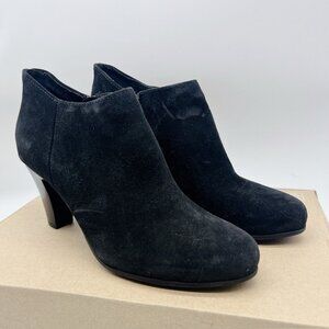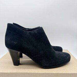 LA CANADIENNE Oliver Waterproof Suede Bootie Heeled Ankle Boots Black US 9