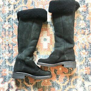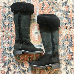 LA CANADIENNE Vintage Tamy Black Suede Shearling Leather Tall Sherpa Boots 6