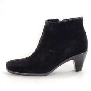 LA CANADIENNE Waterproof Suede Ankle Bootie Black Square Toe
