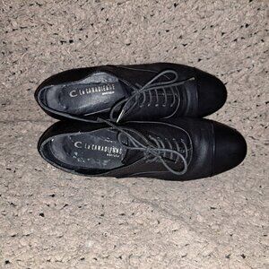 LA CANADIENNE-Black Kid Leather w/Cap Toe-Oxford-Lace Up-36.5-Excellent