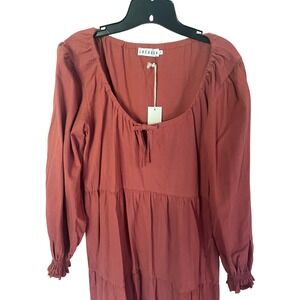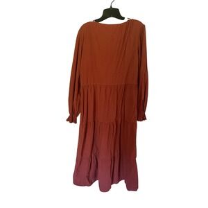 LA Causa Women's Tiered Midi Dress Long Sleeve Rust Brown Size M New