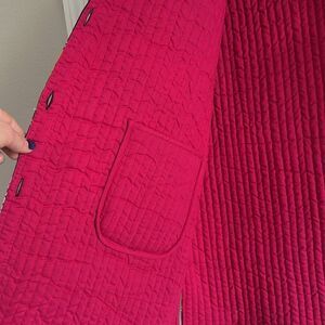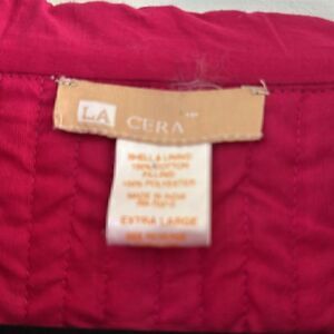 Women’s LA Cera quilted jacket with butterflies. Reversible pink in side. Two pockets on both sides inside and out. Gently used.