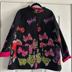 LA Cera Quilted Jacket with Butterflies. Size XL