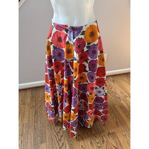 LA DOUBLEJ Holiday Printed Poplin Button Front Maxi Skirt in Zinnie Floral Print Size XS