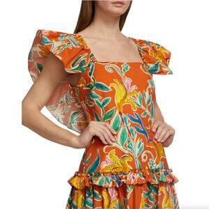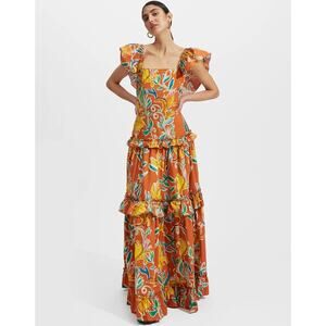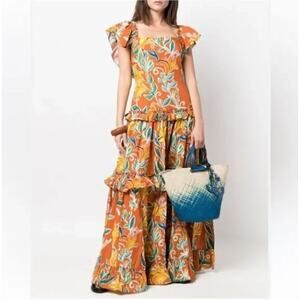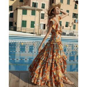 LA DOUBLEJ Scarlett Floral Tiered Maxi Dress Lily Orange Floral Sz XL {KK21}