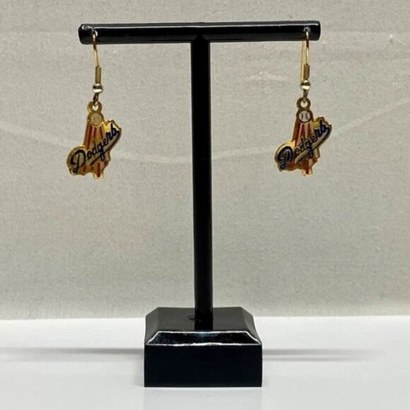 LA Dodgers Baseball Earrings Vintage Official MLB 1989 Gold Dangle Hook Pierced