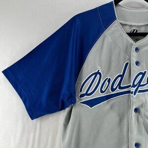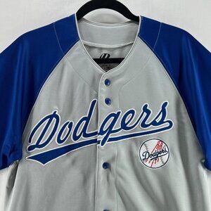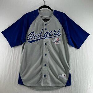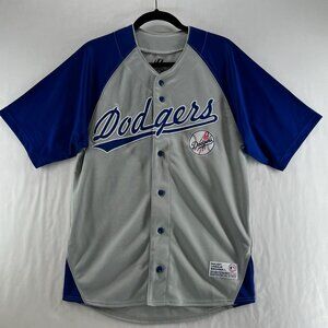 LA Dodgers MLB Jersey Mens M Dynasty Series Button Stretch Colorblock Blue Gray