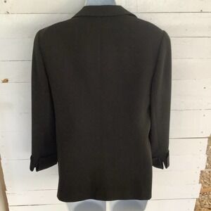 This blazer is in used condition. Fully lined, two real front pockets. It features cuffed sleeves and a single button closure. No major flaws, stains or odors. There is really not a size tag so please look at measurements pics before ordering. Non smoker home