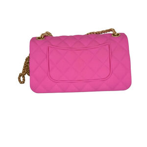 LA Express Pink Jelly Quilted Crossbody Bag with Gold Chain Barbie Y2K Festival